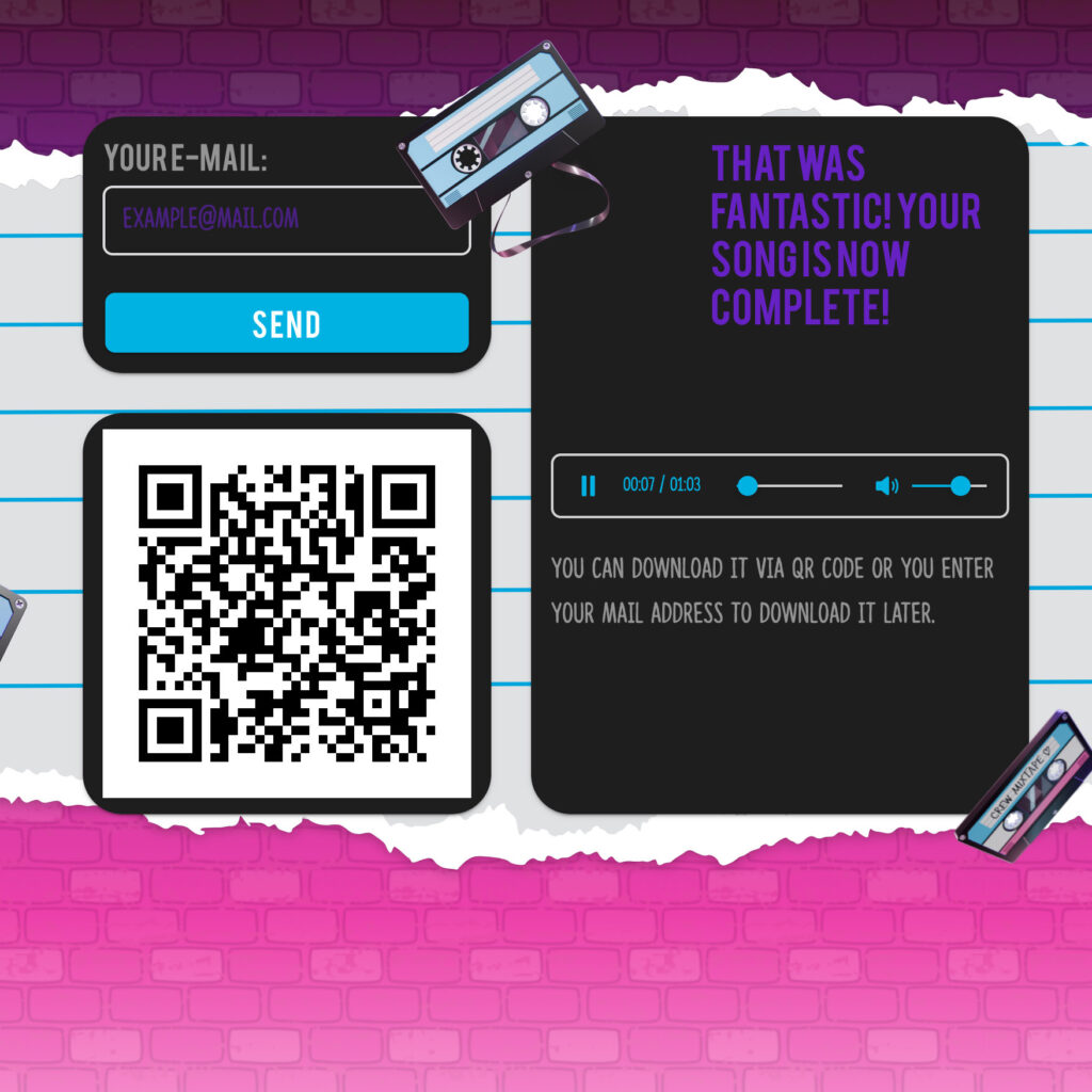 In der App können Kinder bekannte Songs aus der L.O.L. Surprise! Reihe kreativ bearbeiten, Beats und Instrumente auswählen und sogar die Stimme per KI-gestütztem Voice-Tool verändern. Den fertigen Song können sie anhören, per E-Mail versenden oder per QR-Code herunterladen.